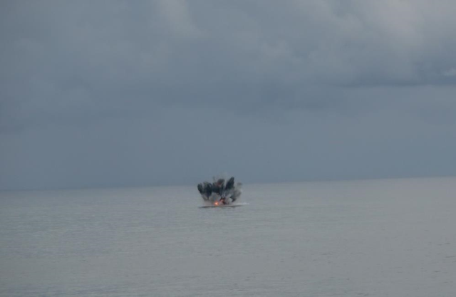Güvenlik tedbirleri alınırken, belirli bir alanda sinyal kesici jammer kullanıldı. Daha sonra vinç yardımıyla denize indirilen deniz aracı, Sahil Güvenlik Komutanlığı’na ait bot tarafından çekilerek açığa götürüldü. Ukrayna’ya ait olan deniz aracı, uzman askeri personel tarafından patlatılarak imha edildi.